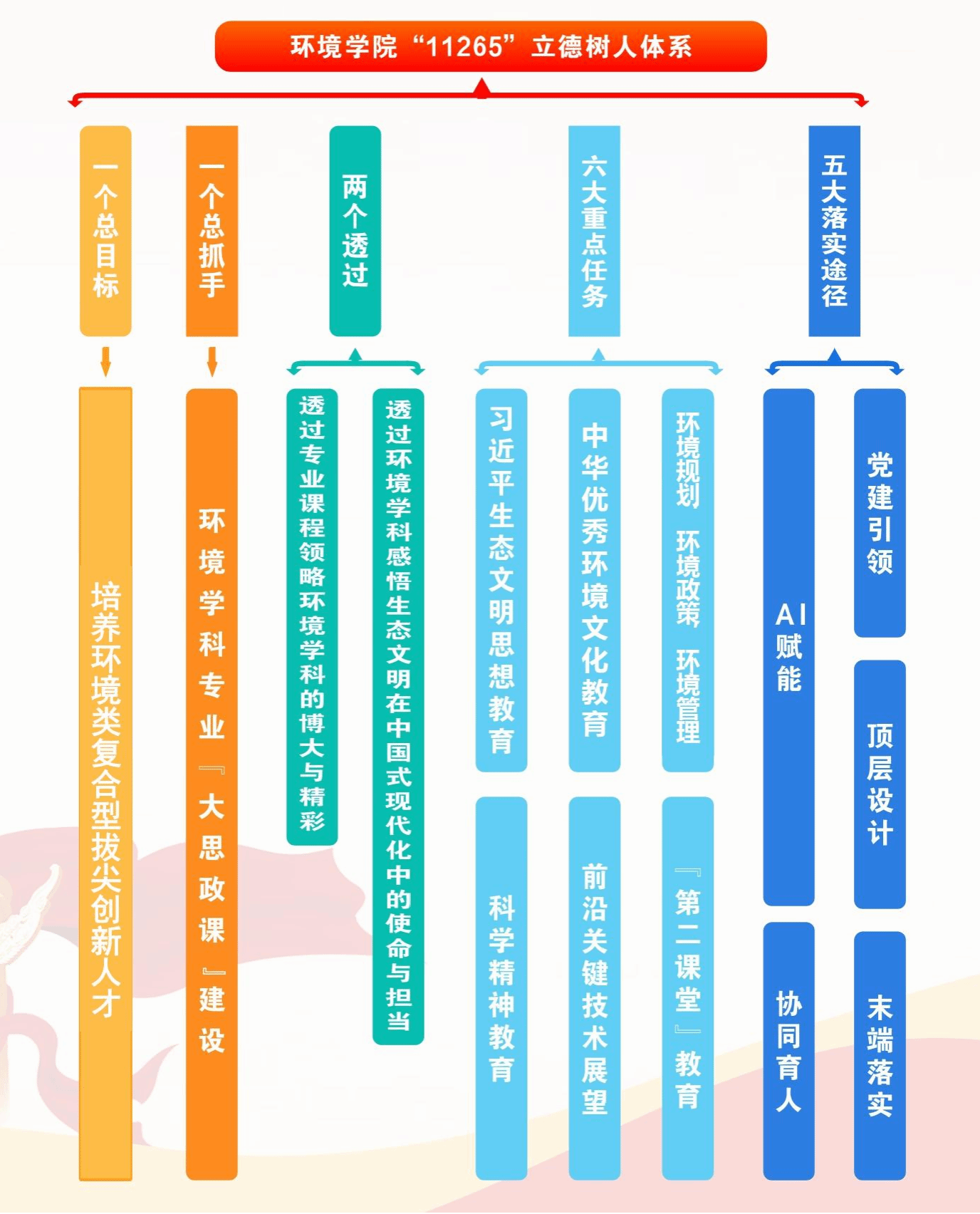 落实一个根本任务,构建富有环境特色的立德树人体系。完善育人体系。落实陕西省立德树人行动指南和学校立德树人实施方案,以培养环境类复合型拔尖创新人才为目标,构建了哔咔漫画 “11265”立德树人体系,发起并举办全国首届环境类学科专业“立德树人”论坛,40余所全国一流大学及行业企业参会,深化交流互鉴,促进协同育人,着力提升哔咔漫画 环境学科建设与人才培养影响力,中国教育报、今日头条、西部网等作了专题报道,社会反响良好。建设“大思政课”。深入推进立德树人“千问千答”工程,发挥学业、朋辈、校外“三支导师”作用,定期开展“院领导面对面”活动,共答青春困惑,解决实际问题,助力成长成才。创新入学教育,精心组织“五个第一课”,教育引导学生尽快适应融入大学学习生活。申报获批国家级、省级课程思政与实践育人项目10余项。提升学业水平。坚持“课比天大”,全覆盖开展数字化教学素养培训,教授为本科生上课率100%,班子成员年度听课100余门次。深化访企拓岗,实施院领导联系导师促就业机制,毕业生就业水平居全校前列。建强团学组织。巩固“五四红旗团委”成果,深化团学组织改革,制定学生干部管理办法,规范召开学代会、研代会,共青团和学生会组织引领服务功能充分发挥。擦亮体育品牌。深化群众体育运动,提升竞技体育水平,校运会成绩连续6年位居全校第一。