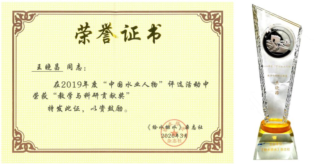 王晓昌教授荣获2019年度“中国水业人物·教学与科研贡献奖”