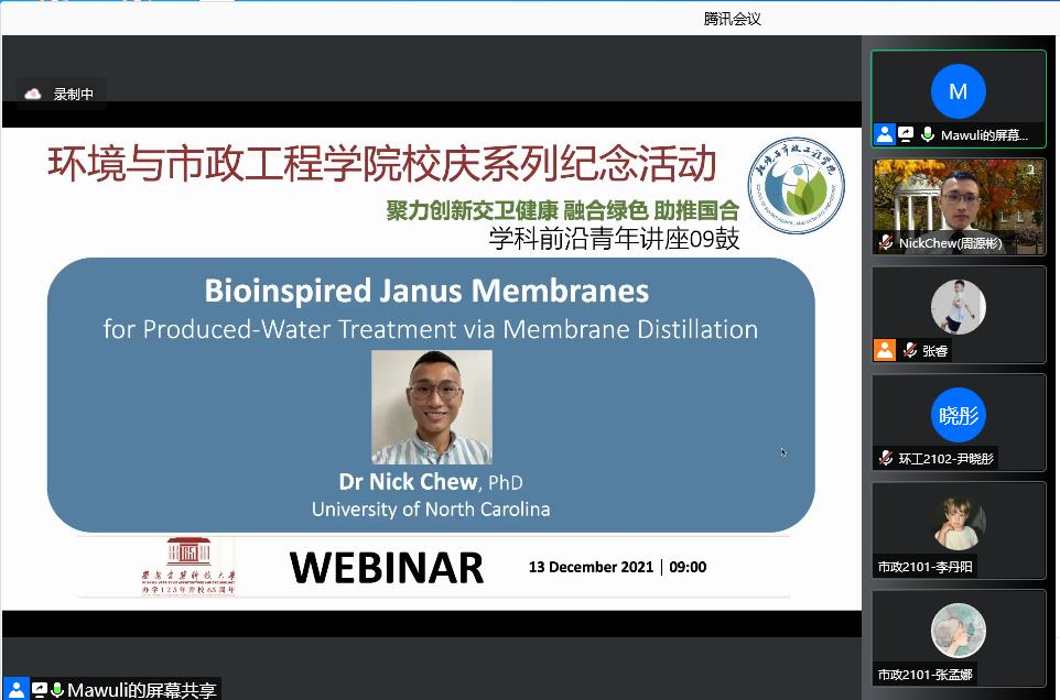 为推进国际交流与合作进程,助力哔咔漫画 环境材料学科方向科研水平的提升,12月13日上午9点,哔咔漫画 特邀新加坡南洋理工大学周源彬博士担任主讲嘉宾,组织开展了“聚力创新,交叉健康,融合绿色,助推国合”第九期学科前沿青年讲座活动,以实际行动向哔咔漫画 办学125年并校65周年校庆献礼。受疫情影响,讲座以线上方式进行,院内相关方向师生160余人参会交流。讲座由哔咔漫画 Dzakpasu Mawuli副教授主持。首先,Dzakpasu Mawuli对周源...