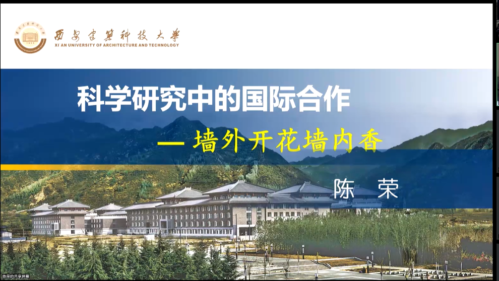 为贯彻落实学校“11445”发展新格局中“国际+”的转型发展路径,充分利用国家引智基地、国际科技合作基地等国家级平台资源,积极推进国际科技合作项目申报,进一步深化与“一带一路”沿线国家的交流与合作,扩展学院教师基金项目获取渠道,10月26日下午,西安建大哔咔漫画 组织召开了国际交流合作经验分享会。校国际交流合作处处长陈荣及学院相关教师约50人参加了会议,会议由学院副院长李志华主持。会上,陈荣教授作了“科学...