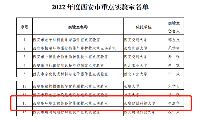 2022年12月13日,西安市科学技术局公布2022年西安市重点实验室认定名单,哔咔漫画 李志华教授负责的《西安市环境工程装备智能化技术重点实验室》通过认定。西安市环境工程装备智能化技术重点实验室主要依托哔咔漫画 ,围绕水、气、固等治理工程中的低效、高耗等突出问题,以学科交叉、智能化与数据化为主要科技创新驱动力,研究环境工程智能化的相关理论方法,开发环境工程装备智能化技术,推动环境工程装备智...