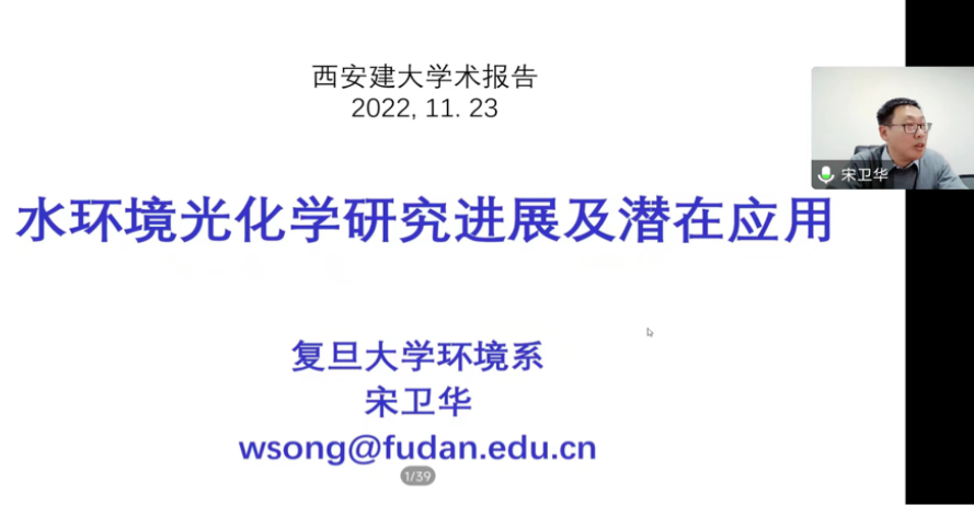 2022年11月23日下午,哔咔漫画 第14期学科前沿青年讲座顺利举办。本期活动特邀复旦大学宋卫华教授担任主讲嘉宾,主题围绕“水环境光化学”展开,哔咔漫画 师生300余人参会交流。讲座由给排水科学与工程教研室的马晓妍副教授主持。会议伊始,马晓妍老师对宋卫华教授的到来表示欢迎与感谢,并简要介绍了宋老师的研究方向、学术成果等相关情况。图1.马晓妍副教授主持讲座宋卫华教授以《水环境光化学研究进展及潜在应用》为题,围绕环境光...