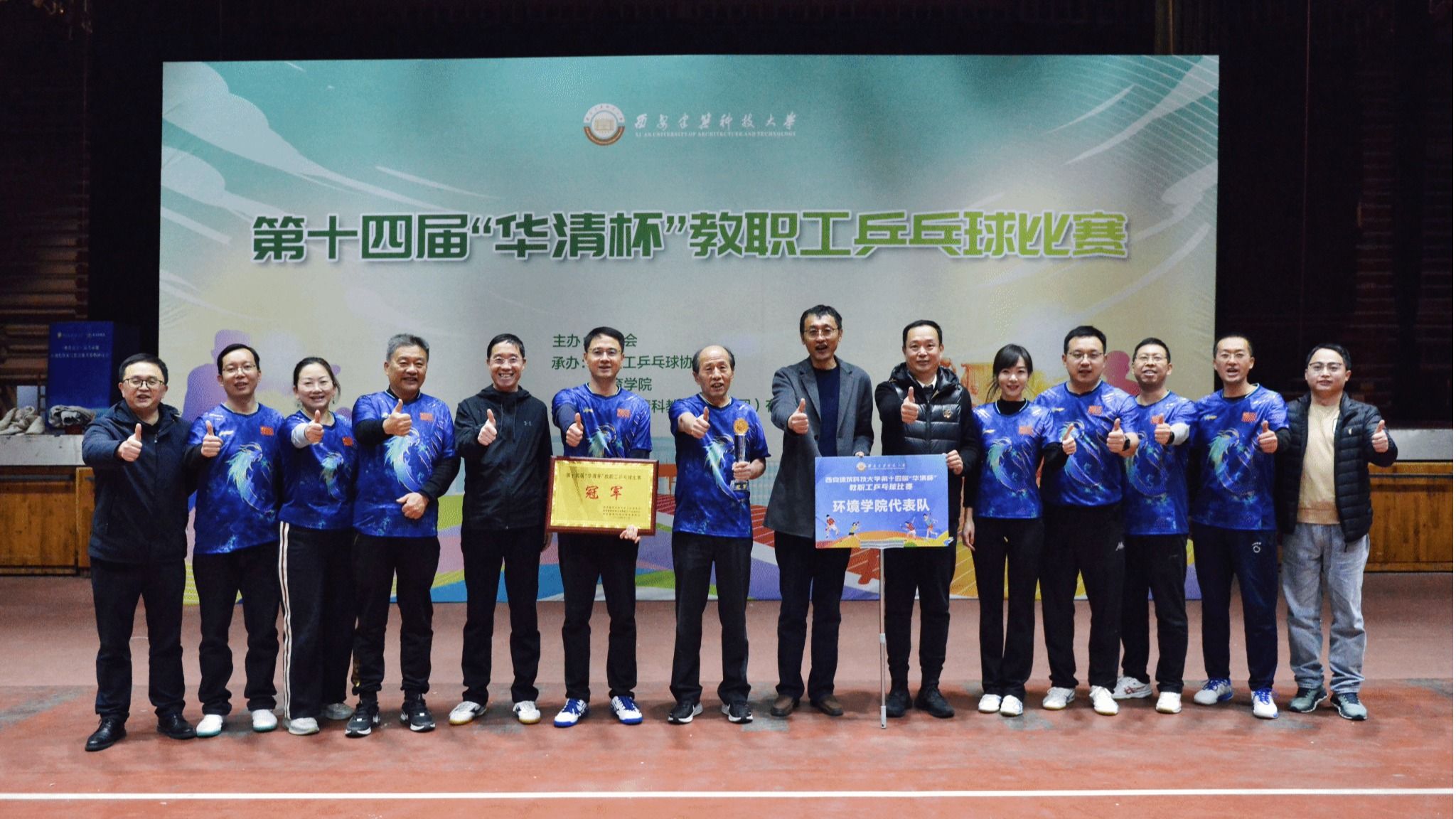 11月28日,西建大第十四届教职工乒乓球比赛在雁塔校区文体馆落下帷幕。校党委常委、副校长雷鹏、陈荣,校党委常委、组织部部长、统战部部长卜长安,校工会常务副主席迟志武,华清集团党委书记魏井福,体育学院党总支副书记尉庆国,工会副主席乔琨,比赛裁判组组长续媛媛等出席闭幕式并为获奖代表队颁奖。闭幕式由校工会副主席程永阳主持。本次比赛校工会主办,校教职工乒乓球协会、体育学院承办。共有来自18个二级单位的186位教职工参赛,...