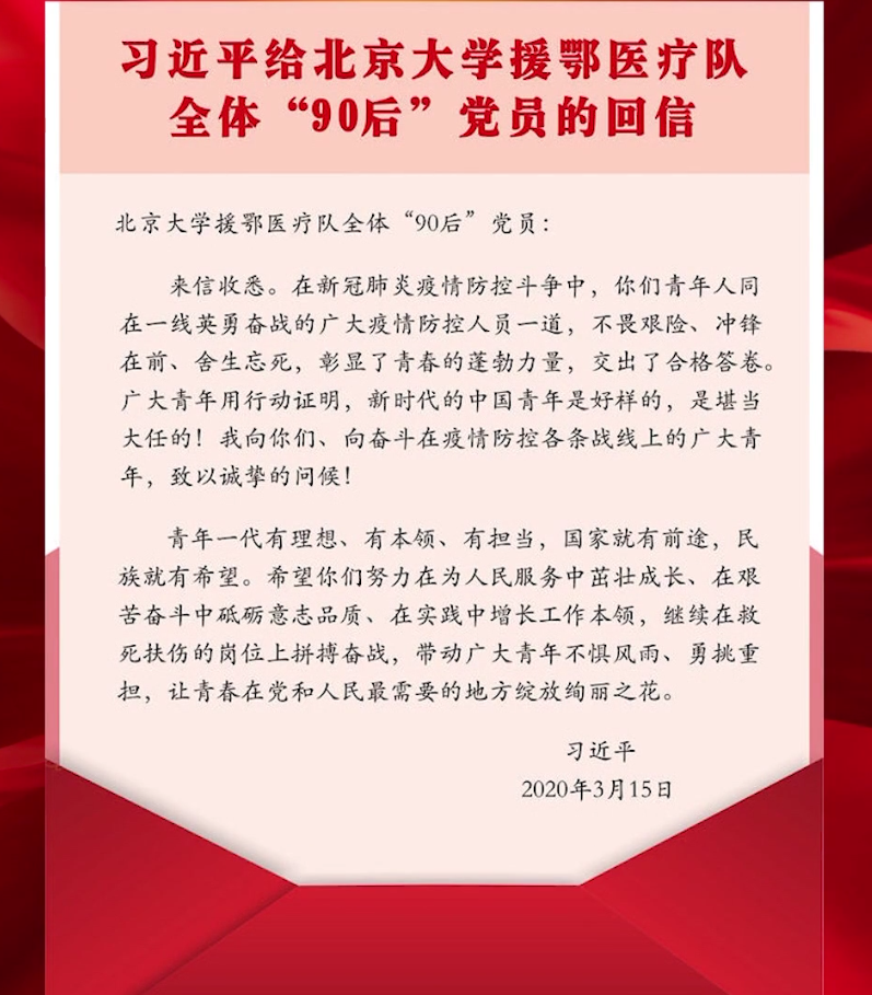 会议开始,张崇淼书记首先为支部全体党员简要说明了此次线上主题党日活动的意义与必要性。接下来,支部党员集中学习了习近平总书记给北京大学援鄂医疗队全体“90后”党员的回信和给在首钢医院实习的西藏大学医学院学生的回信精神,以及4月8日中共中央政治局常委会会议精神。支部党员就学习总书记回信精神,领会中央部署落实新冠病毒肺炎疫情防控、全面推进复工复产工作会议精神,结合教育教学工作,交流了自己的感悟与体会。