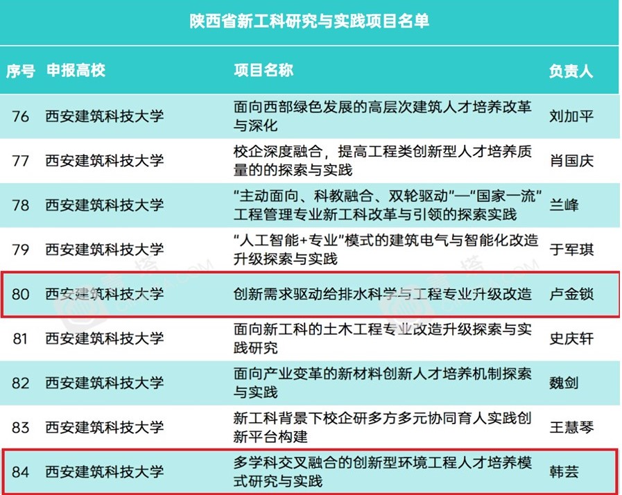 近日,陕西省教育厅在官网上公示了新工科、新农科研究与改革实践项目评选结果,共有180个项目进入公示名单。