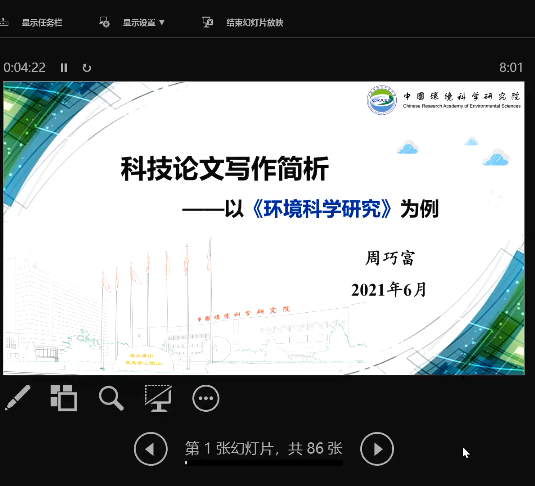 师生做题为“科技论文写作简析——以《环境科学研究》为例”的学术报告。报告利用腾讯会议平台召开,由副院长张海涵教授主持会议,约160名研究生共同聆听了本次学术报告。