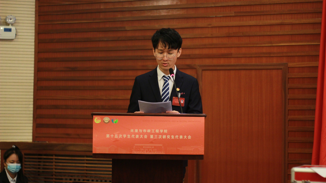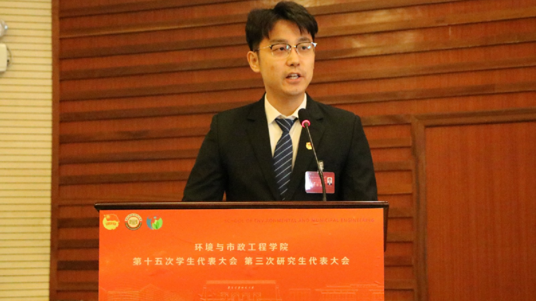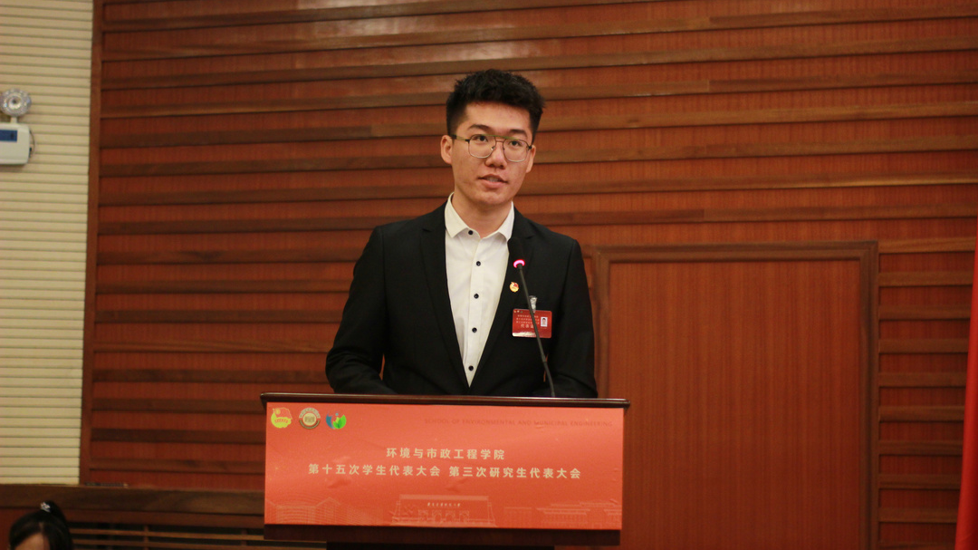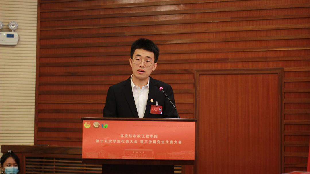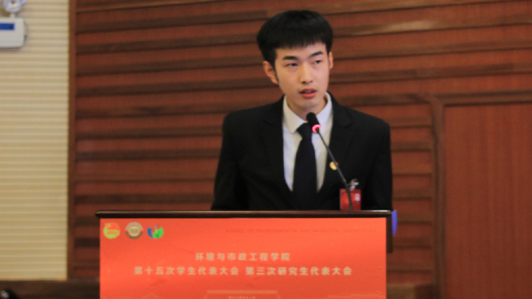 研究生会执行主席荆若松同学代表研究生会委员会作题为《肩负时代重任 矢志艰苦奋斗 团结带领广大环境研究生
