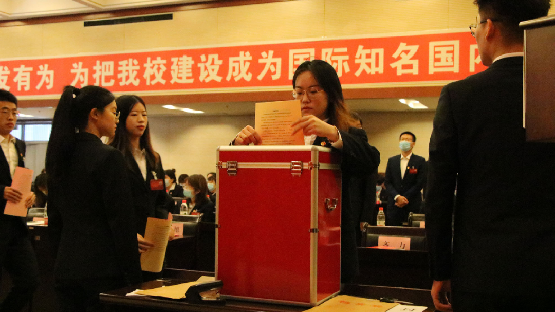大会选举正式开始,工作人员宣读《大会选举办法》,宣布候选人正式人选名单,宣读大会总监票人、监票人、总计票人、计票人名单。大会选举学生会委员会委员、研究生会委员会委员、学生会主席团、研究生会主席团及校双代会代表。