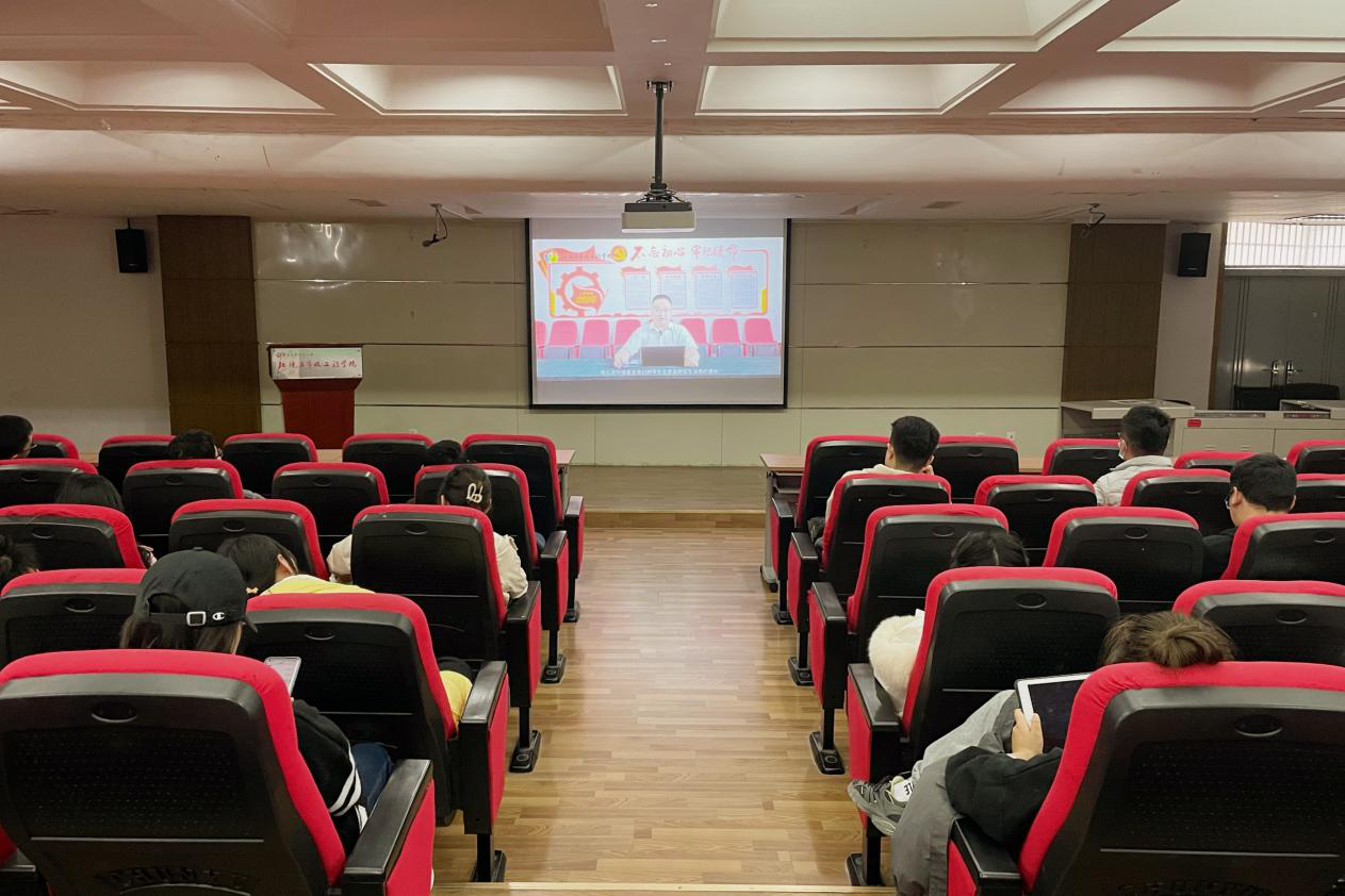 培训会分为现场讲解和观影学习两部分内容,分别在上、下午进行。上午,党委研究生工作部副部长蒋正老师、党委组织部副部长高魁老师分别为大家授课。