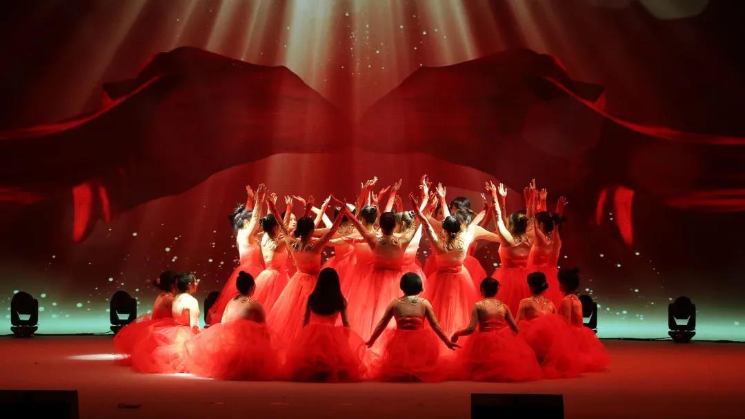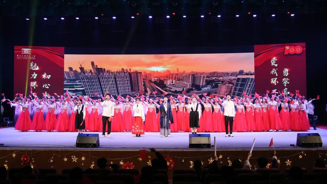 晚会在激动人心的开场视频中正式开始,视频回顾了学院一年来的主要学生工作和所获得的各项荣誉。随着倒计时的声声响起,开场舞《再唱山歌给党听》盛大开场。慷慨激昂的歌声,欢快活泼的舞蹈,伴随着歌声正跃动,她们的一颦一笑之间,都表达了对党的祝福。百年征程波澜壮阔,百年初心历久弥新。穿越百年历史,当年的那艘小船,已成为领航中国行稳致远的巍巍巨轮。如今中国早已换了人间。