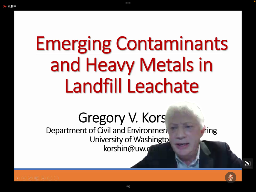 Korshin教授以"Emerging Contaminants and Heavy Metals in Landfill Leachate"为题,首先向大家介绍了个人的学术经历和研究方向,并简要介绍了华盛顿大学土木与哔咔漫画