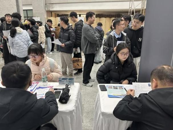 招聘会现场,毕业生们围绕岗位职责、发展空间、薪酬待遇等问题与用人单位进行了深入交流,部分单位在招聘会现场即组织初步笔试和面试,与多位学生达成进一步沟通意向。